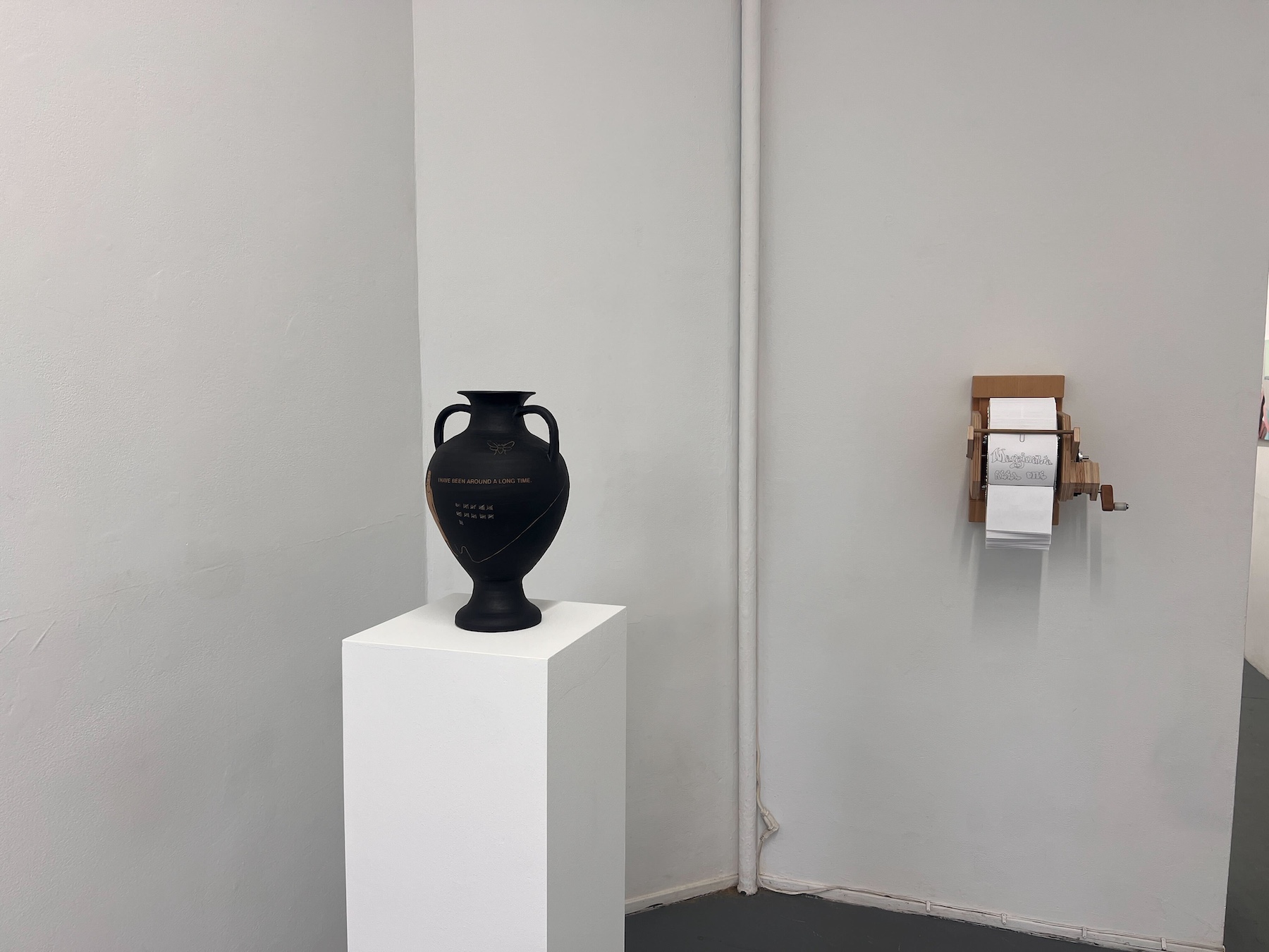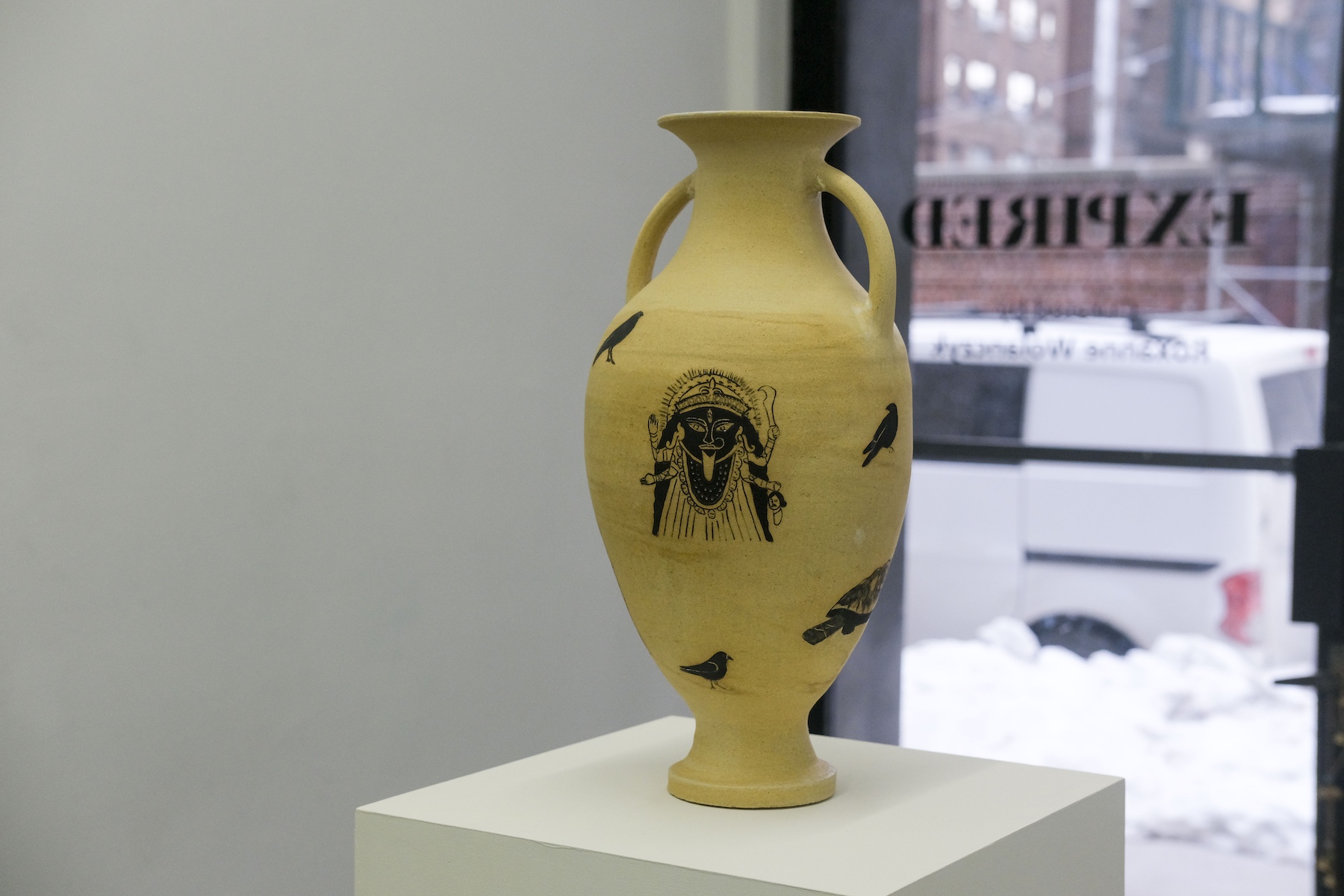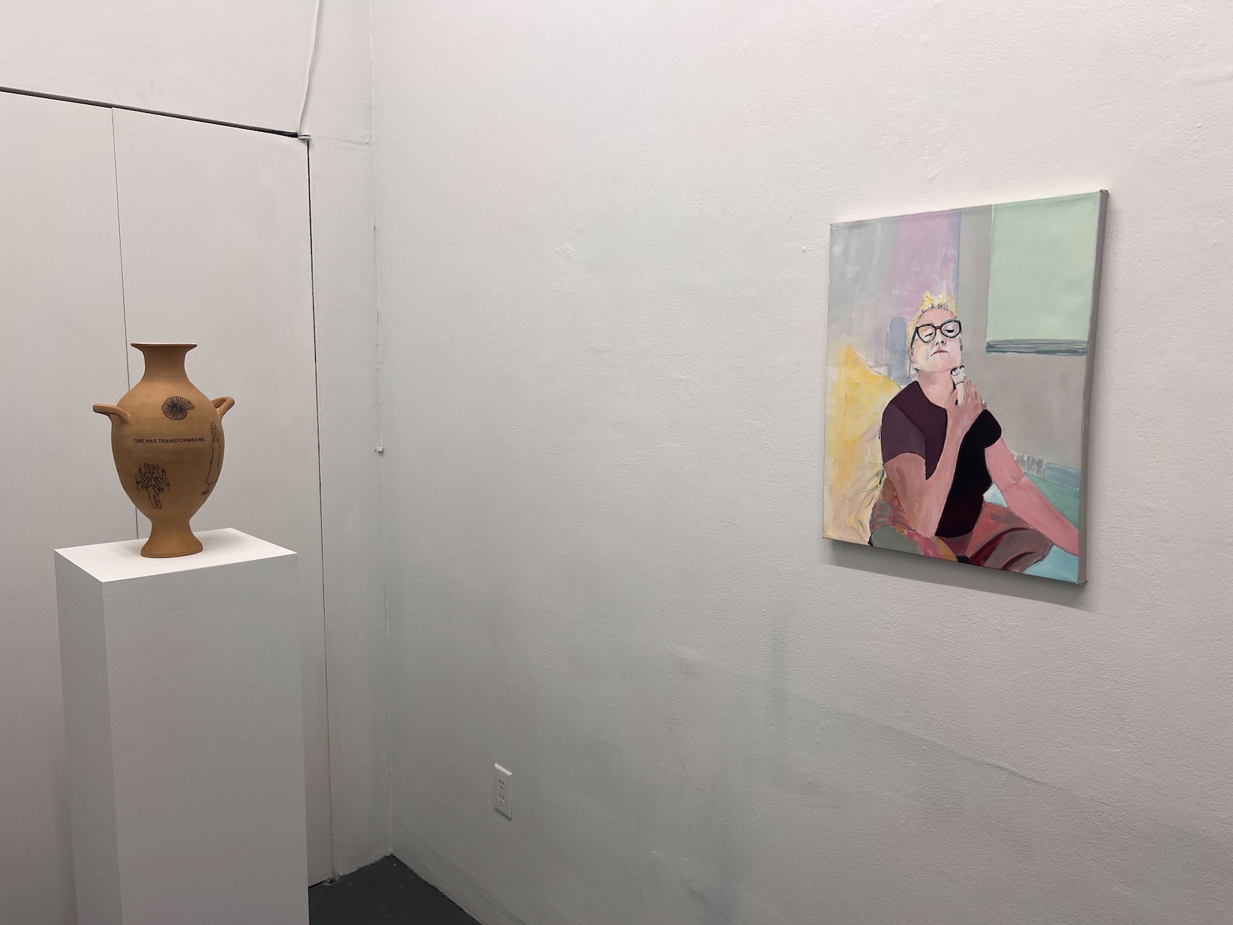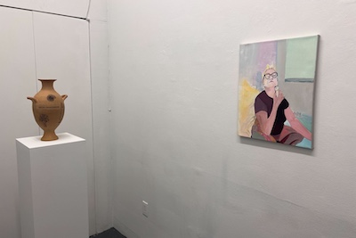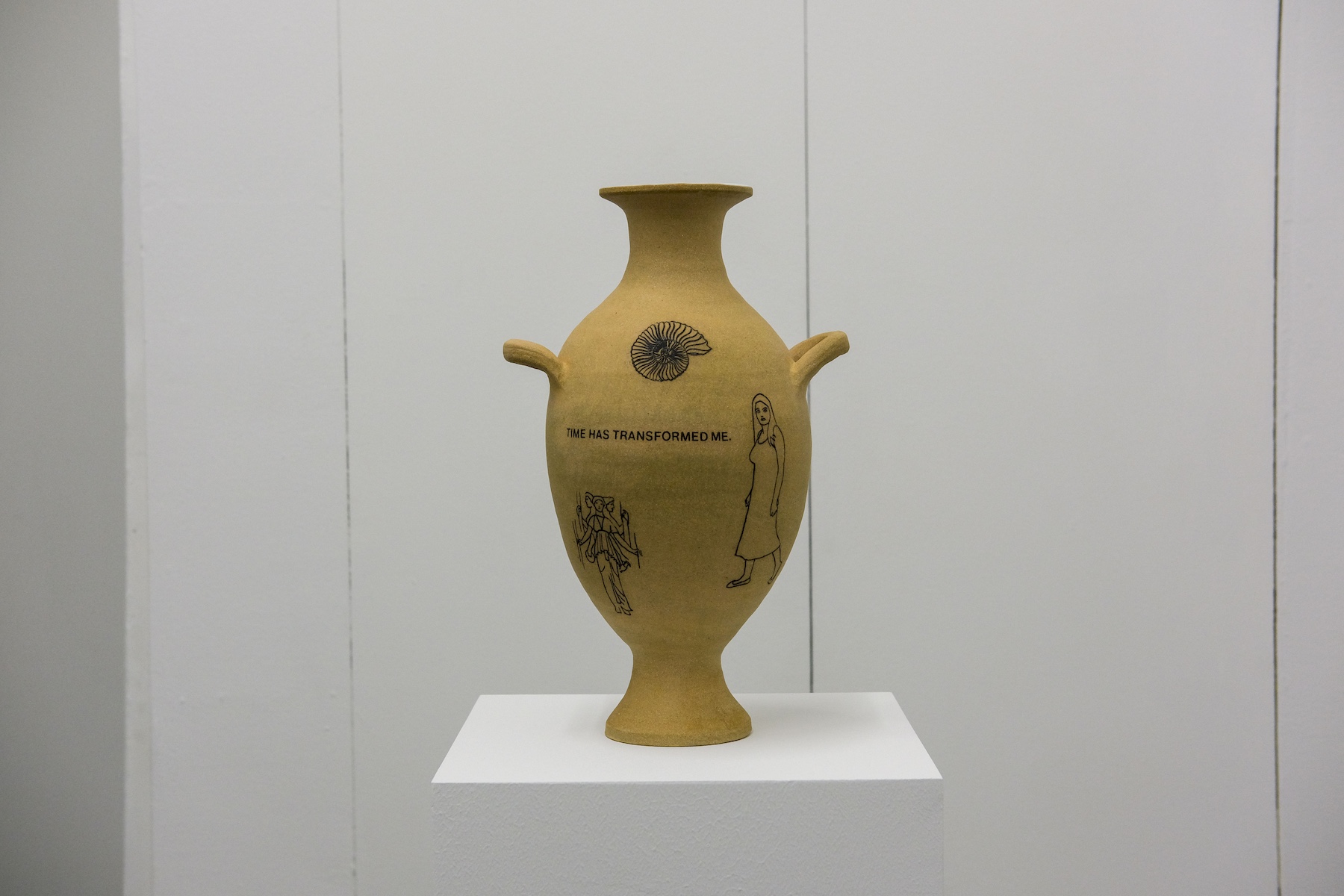 R.W. is a ceramic artist based in New York City who spent years working as a geriatric social worker, providing support for an often overlooked population. Her classical urns and vessels, adorned with text and symbols of transformation, death, and regeneration, confront existential questions of mortality. Her piece, “I will soon be an antiquity. I hope to handle the passage of time intact. I am developing an interesting patina,” reflects on aging as a process of becoming both vulnerable and resilient. Another work, “I feel lost. Will I be found? Will I remain in one piece?” speaks to both the body of the artist, the vase itself, and the context they both exist.