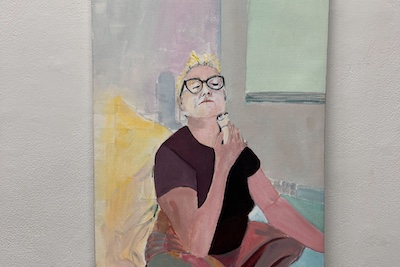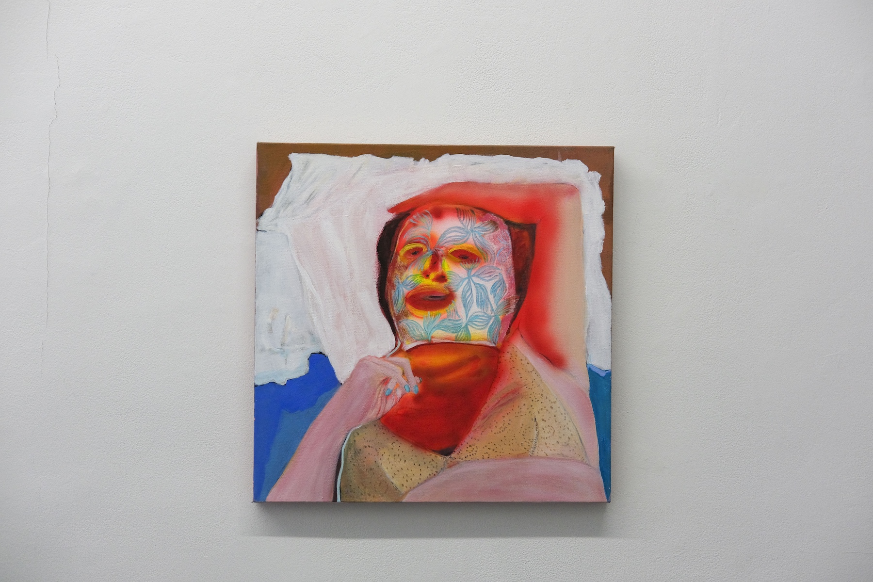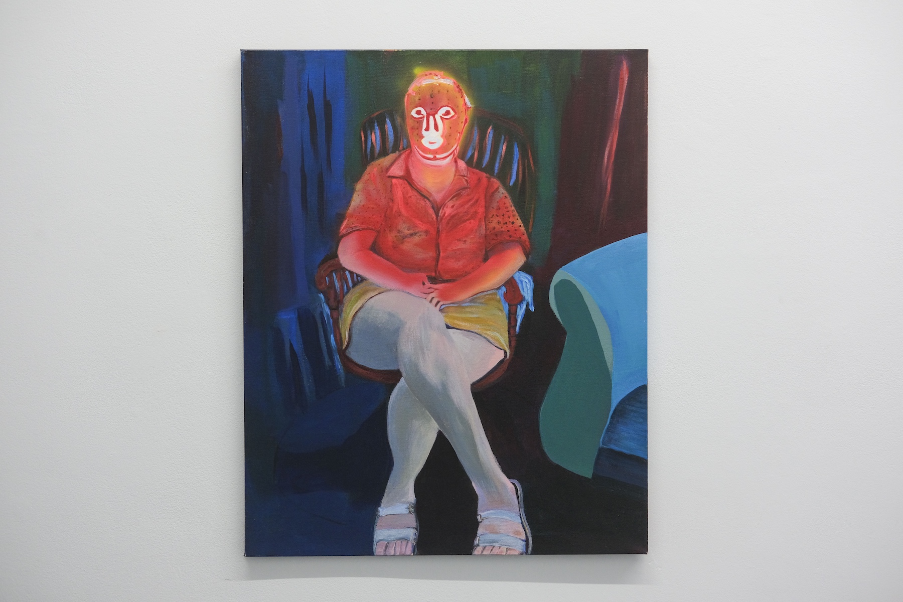 C.S. is a painter based in New York City, whose intimate portrait series of her wife glowing under a red light anti-aging and skin rejuvenation mask, titled “Beauty Is You,” reflects our cultural obsession with youth and beauty. Her subject appears saintly, bathed in a halo of light, yet masked in something both divine and absurd, exposing the lengths we go to preserve youth.